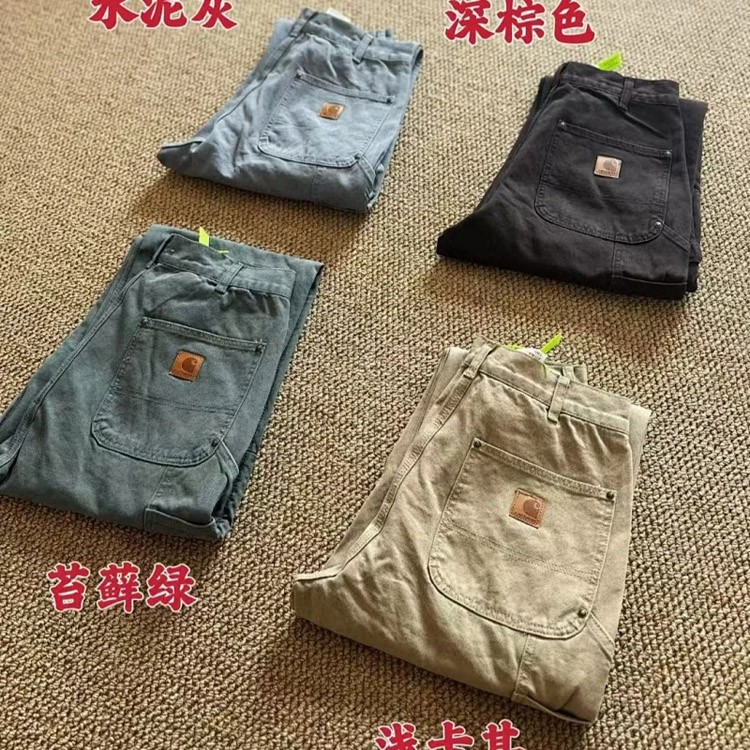 Carhartt washed distressed double-knee canvas work pants-4917