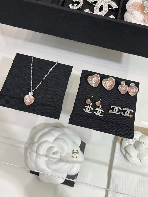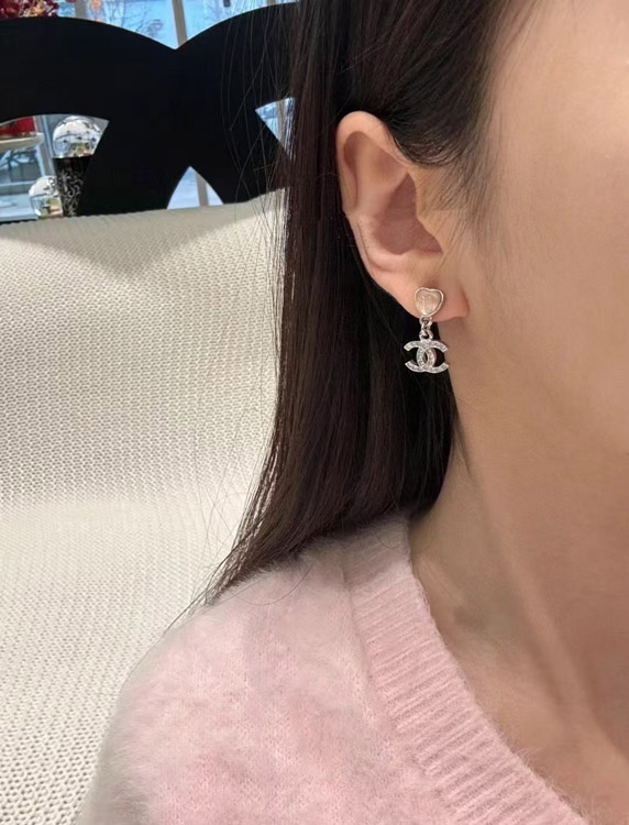 Home > Chanel pink little heart silver full diamond double C earrings-3747