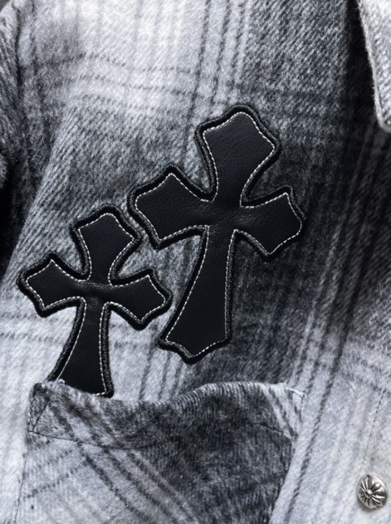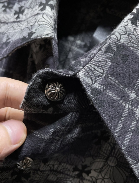 Chrome Hearts (CH) New Style Mixed-Material Plaid Shirt with Allover Print-6008