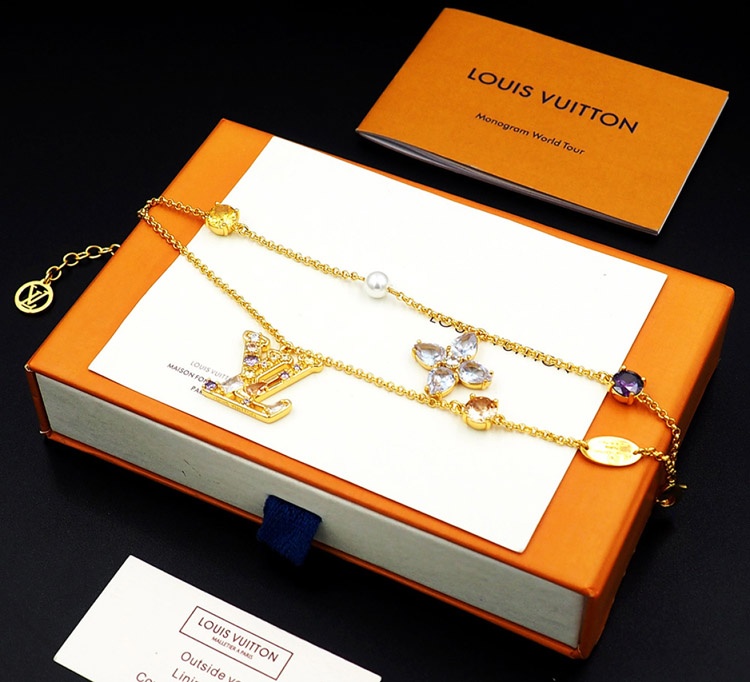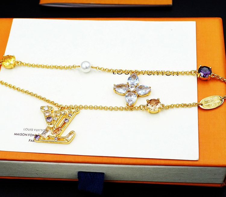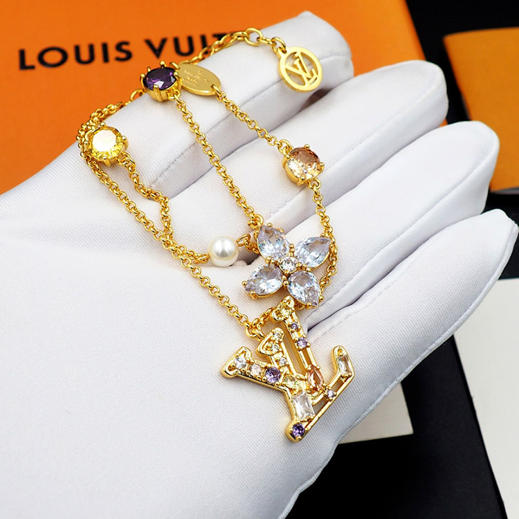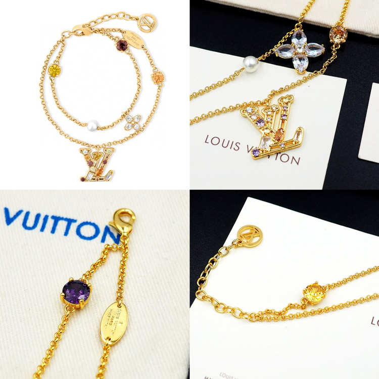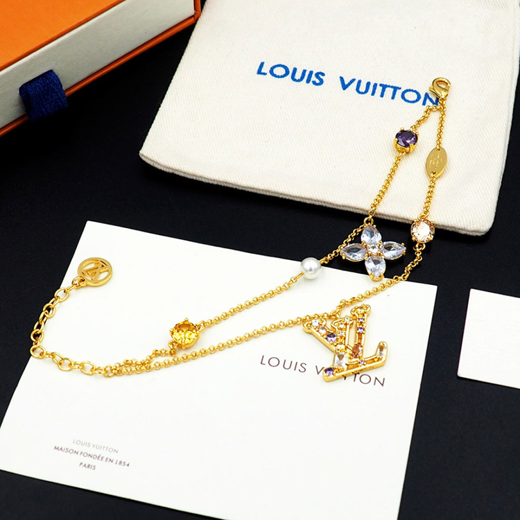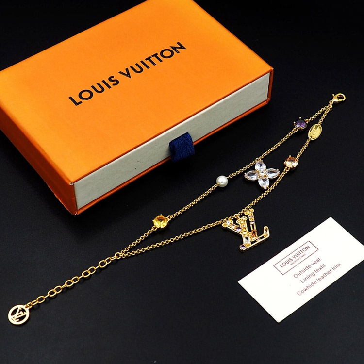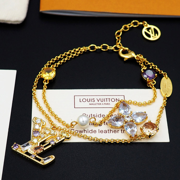 Louis Vuitton LV double metal chain inlaid diamond bracelet-3801