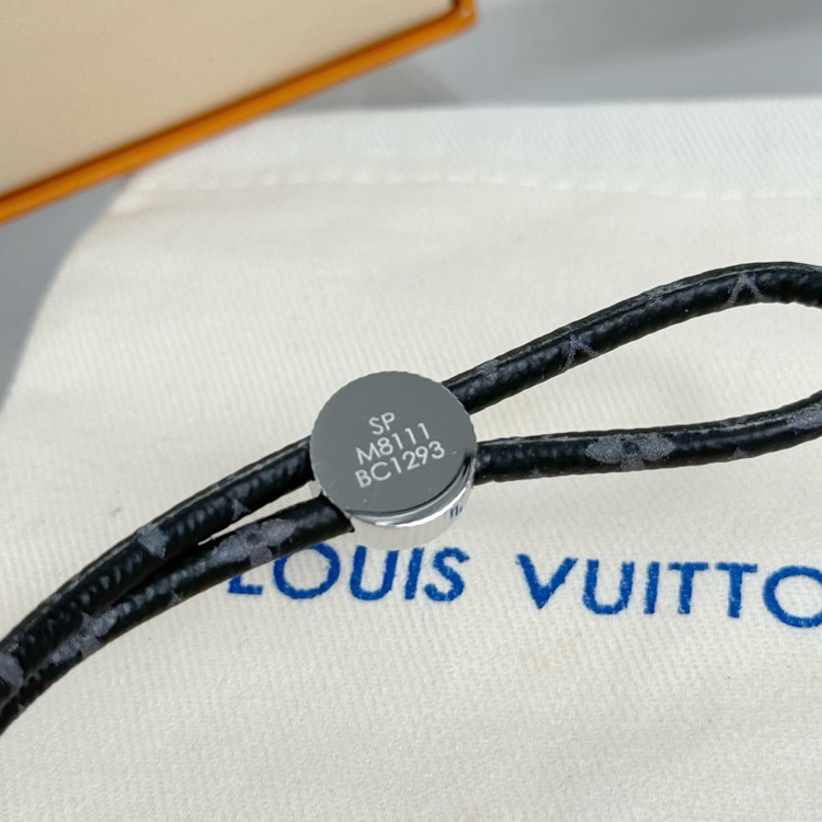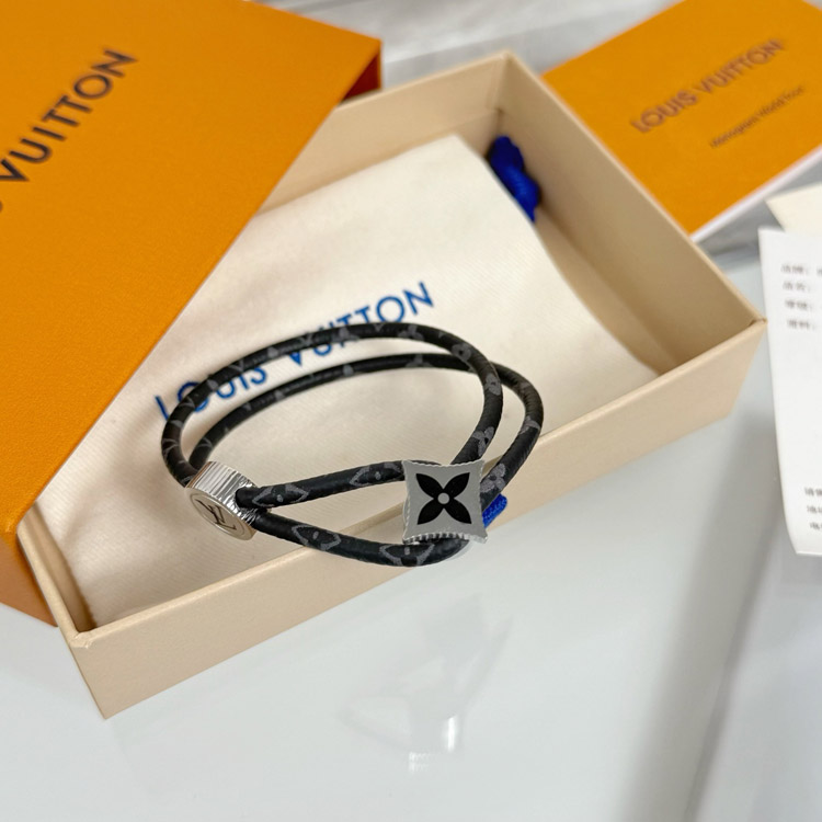 Louis Vuitton LV Letter Floral Black Flower Leather Buckle Bracelet-3640