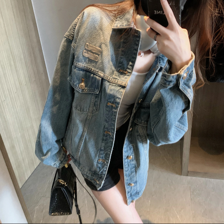 Home > Miu Miu washed blue patchwork denim jacket-5946