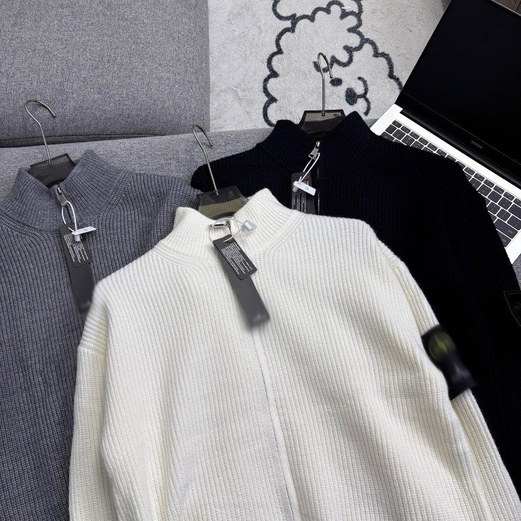 Stone Island loose-fitting knitted cardigan sweater with zipper closure-5233