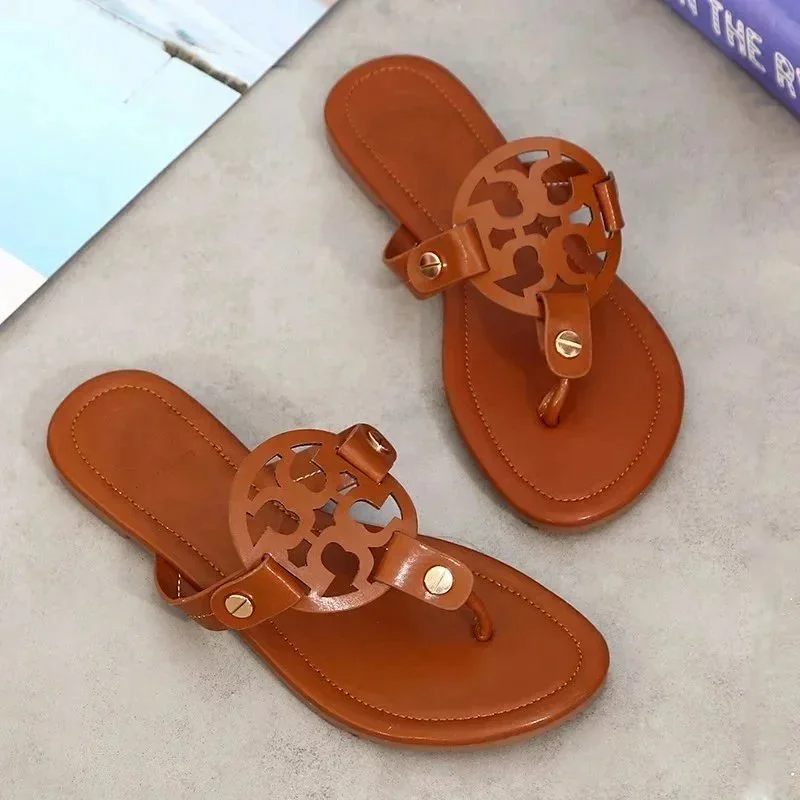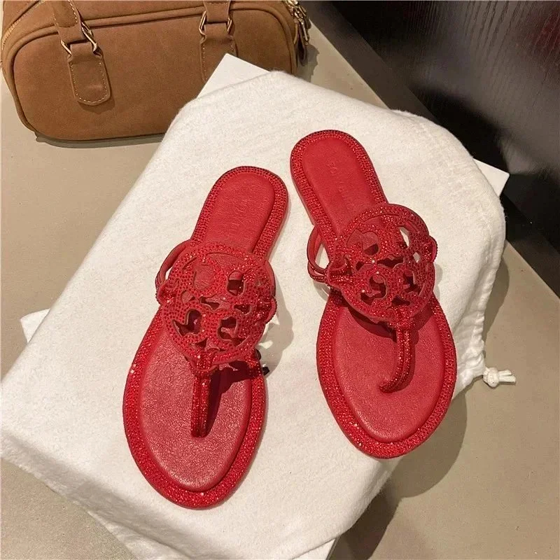 Home > Tory Bury New diamond flat bottom women's slippers ins fashionable beach thong toe rivet rhinestone flip flops-2330